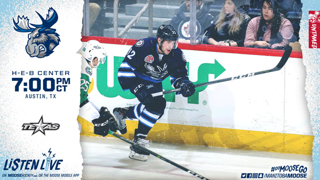 The Manitoba Moose (7-7-0-0) get this season’s first glimpse of their new Central Division opponents, the Texas Stars (6-5-1-1). The 7:00 p.m. CT. puck drop will be available on the Moose App, moosehockey.com/listenlive, or streaming live on AHLTV.
